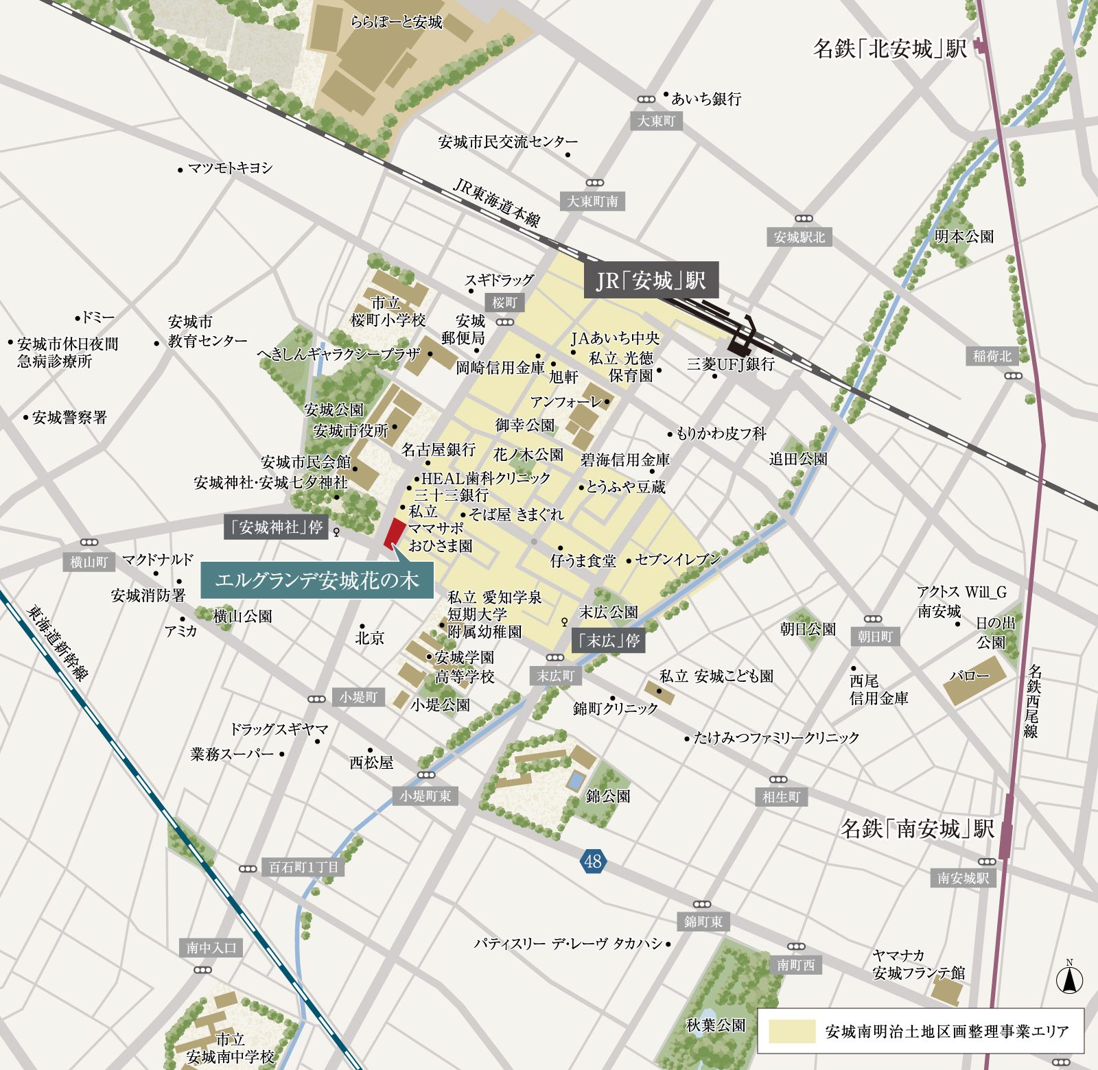 JR「安城」駅南一帯で、